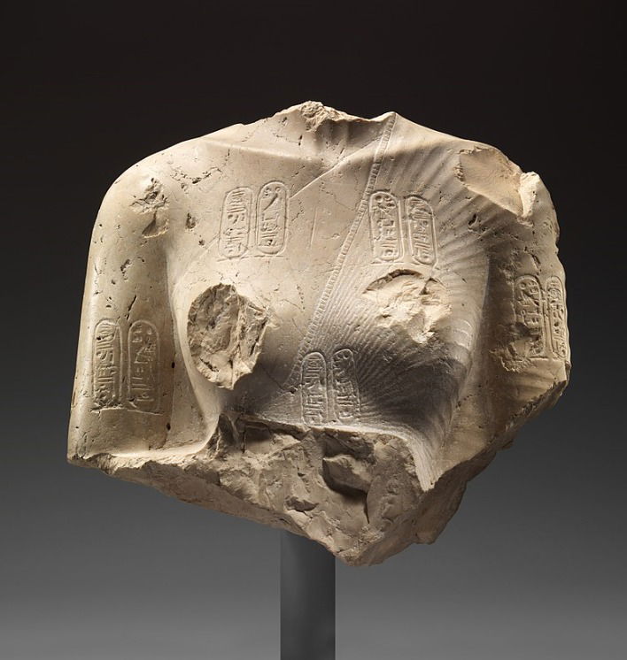No. [3] The ‘Torso of Nefertiti - Aten ‘cartouches’’ held at The Metropolitan Museum of Art, New York (1): from the Great Temple of the Aten, Tell el-Amarna (Akhetaten) 18th Dynasty, Ancient Egypt; made from indurated limestone (Cir. 1352 - 1336 BC) - Wikimedia.org - https://commons.wikimedia.org/wiki/Category:Statues_of_Nefertiti