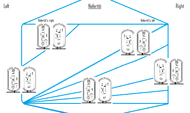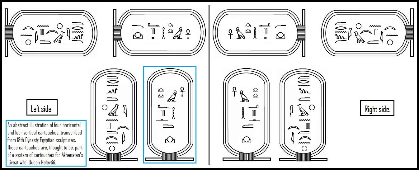 No. [6] An abstract illustration of the ‘cartouches’ and their location on the ‘Torso of Nefertiti - Aten ‘cartouches’’ held at The Metropolitan Museum of Art, New York: from the Great Temple of the Aten, Tell el-Amarna (Akhetaten) 18th Dynasty, Ancient Egypt; made from indurated limestone (Cir. 1352 - 1336 BC).