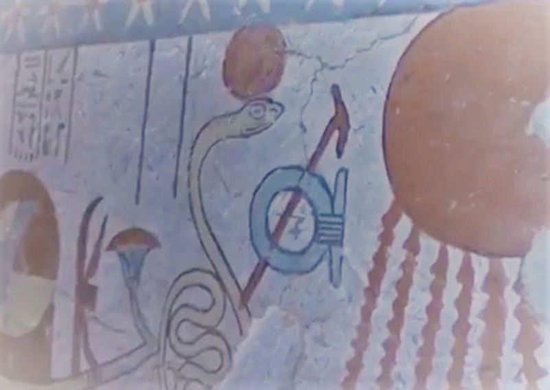 *No. [12] A ‘Shen ring’ from the Ptolemaic period (Cir. 320 BC) - a hieroglyphic painting with a snake motif (possibly a ‘nome’ reference as ‘Wadjet’) from the newly discovered tomb (Oct. 2018) al-Dayabat, Sohag, Egypt - (see, the BBC video, in the web-page, for the picture image) - Archaeology newsnetwork.blogspot.com - https://archaeologynewsnetwork.blogspot.com/2019/04/ptolemaic-era-tomb-discovered-in-upper.html#IKdkEkdFsDYggR3B.97