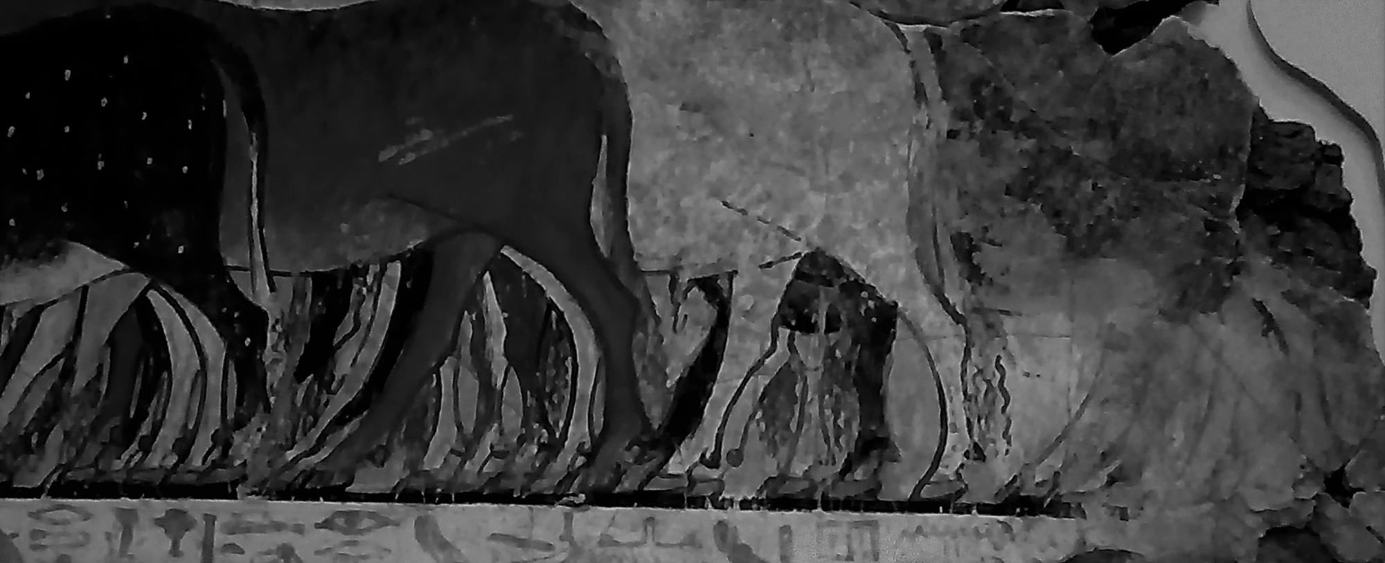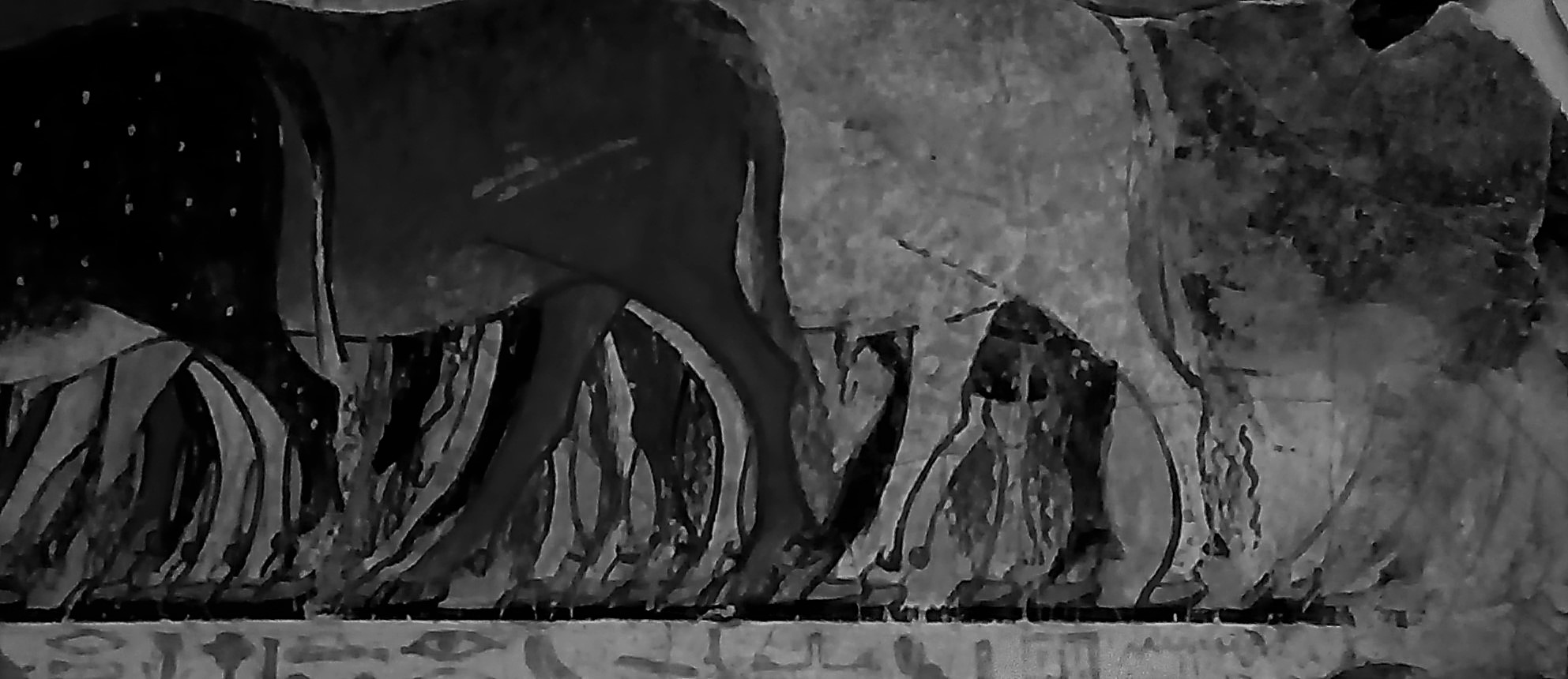 [1.1] Illustrative sketch detail - with reference to 'Nebamun with his cattle' - Wall Paintings, Room 61, The British Museum, London - See, also, URL links: a). Flickr.com - https://www.flickr.com/photos/141521575@N02/ | b). Pinterest.co.uk - https://www.pinterest.co.uk/richardfuster1641/christmas-2018/