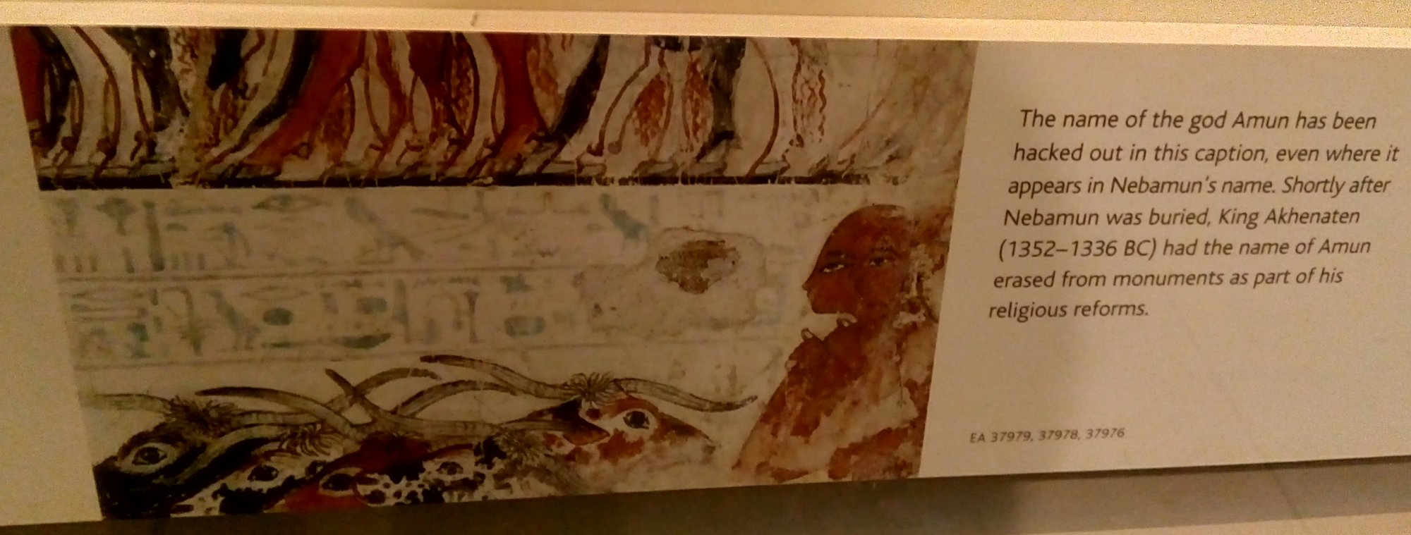 [2] Reference sign - for 'the wall paintings and the Tomb-chapel of Nebamun' - Room 61, The British Museum, London - See, also, URL links: a). Flickr.com - https://www.flickr.com/photos/141521575@N02/ | b). Pinterest.co.uk - https://www.pinterest.co.uk/richardfuster1641/christmas-2018/